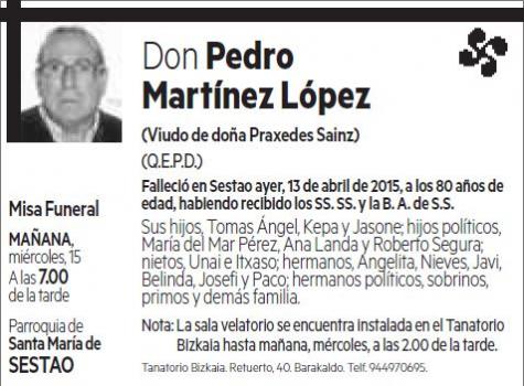 Funeral Miércoles 15/04/2015 Iglesia Sta Maria de Sestao a las 19:00Leer más [+]